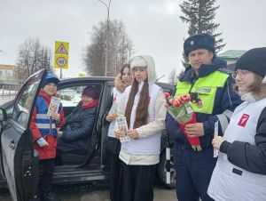 Цветы для автоледи: ГИБДД и юные активисты в Дрожжановском районе РТ поздравили женщин-водителей с 8 Марта
