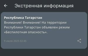 В Республике Татарстан снова объявили о беспилотной опасности