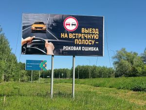 На автодороге из села Старое Дрожжаное размещён баннер социальной рекламы по БДД